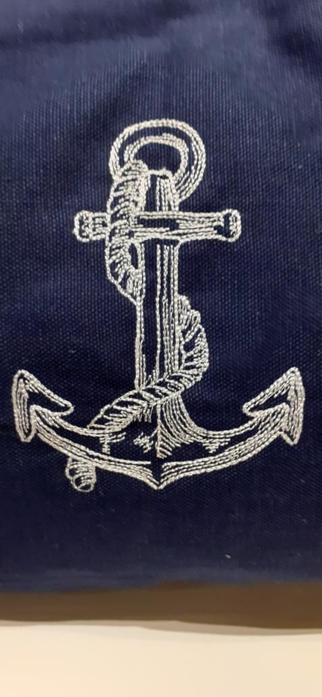 Handmade Kissenhülle maritim mit Stickerei Anker