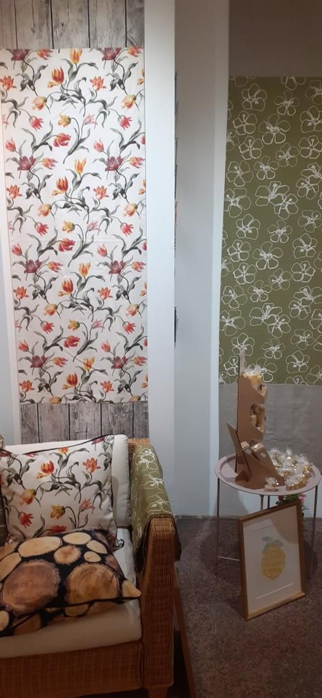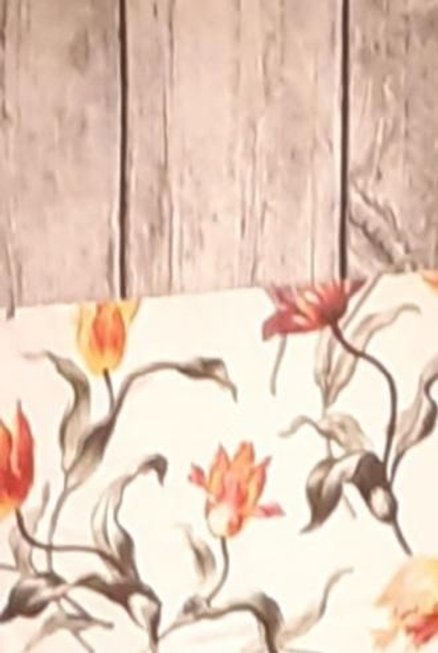 Dieser Wandbehang wurde aus 2 verschiedenen Stoffen kombiniert: Stoff 1 feines Tulpenmuster, Stoff 2 rustikale HolzbohlenOptik, und gibt damit jedem Raum eine individuelle Note;