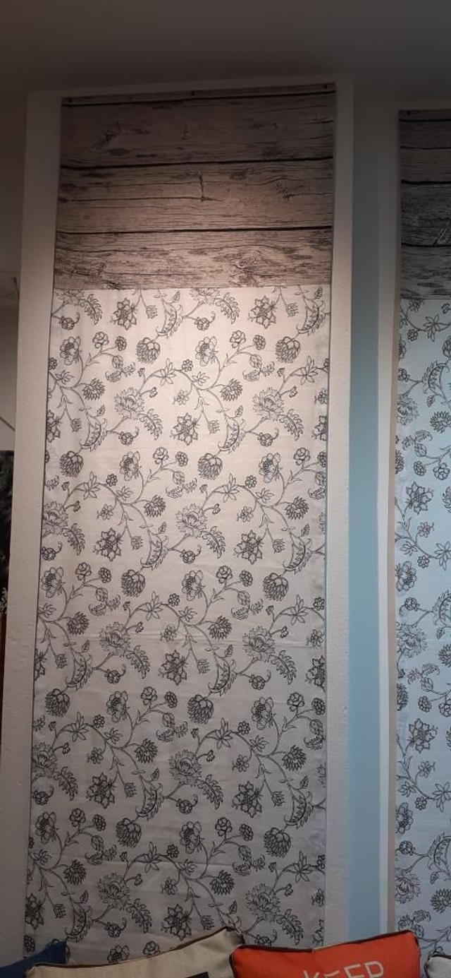 Dieser Wandbehang wurde aus 2 verschiedenen Stoffen kombiniert: Stoff 1 mit feiner stilisierter Blumenranke aus Leinen, Stoff 2 mit rustikaler HolzbohlenOptik aus Baumwolle, und gibt damit jedem Raum eine individuelle Note;